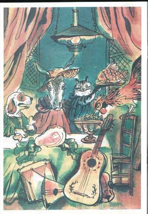 ![]() BEREMENLI SAZANDALAR Bir bar eken, bir ýok eken. Gadym zamanda bir degirmençi bar eken. Degirmençiniň bir eşegi bar eken. Ol duşbi hem güýçlümişin. Eşek bütin ömrüni arkasynda agyr unly haltalary daşap, degirmende işlap geçiripdir. Indi bolsa janawer garrapdyr. Hojaýyny eşegiň güýçden galyp, işe ýaramaýanyny görüp, ony aç saklapdyr. Ýagdaýy gün-günden erbetleşensoň, eşek eýesin-den gaçyp gidýär. Eşek: "Indi nirä giderkäm? Men bir sandan galan ahyry" diyip, gama batýar. Soňra bolsa: "Gel, gowusy, men Bremen şäherine gidip, ol ýerde şäher sazandasy bolaýyn" diýen netijä gelýär. Şundan soňra eşek Bremen şäherine ýola duşýär. Ol birnäçe wagtlap ýol ýöräninden soňra onuň öňünden bir tazy çykypdyr. Tazy köçede mejalsyz ýatyrmyşyn. Eşek: - Eý, tazy, sen näme üçin beýle haslap ýatyrsyň? Saňa näme boldy? - diýip sorapdyr. Tazy: - Ýadadym, juda ýadadym. Men şeýle bir köp ylgadym welin, ine şonuň üçinem haşlaýaryn - diýip jogap beripdir. Eşek: - Eý, tazy, sen näme üçin beýle ylgadyň? - diýip sorapdyr. - Wah, eşek dost, sen bir maňa haýpyň gelsin.Men bir awçynyň öüýnde uzak wagtlap onuň hyzmatyny edip geldim, indi bolsa garrap, güýç-gurbatdan galypdyryn. Oňki ýaly awa ýaramok.Şonuň üçinem hojaýynym meni öldürjek boldy. Men ondan soňky demimde zordan sypyp gaýtdym. indi hem bolsa alaçsyzja gama batyp ýatyryn. - Bilýäňmi, näme - diýip, eşek taza yüzlendi. Men şäher sazandasy bolmak üçin Bremen şäherine barýaryn. Belki, senem meniň bilen gidersin?! Men-ä gitara çalarýn, senem dep kakarsyň. Tazy diýseň begenipdir. Ol eşek bilen yola düşyär. Olar gidip barýarkalar öňlerinden bir gaýga batyp oturan pişijek çykypdyr. Eşek: Ey, pişijek, sen näme gam-gussa batyp otyrsyň? diýip, pişigiň halyndan habar alypdyr. Pişijek: - Men nädip gaýga batmaýyn. Maňa rehimiňiz gelsin, dostlar. Biler bolsaňyz öňler men syçan tutup hojaýynymyň göwnünden turýardym. Indi men garrapdyryn, dişlerimem kütelipdir. Ine, şonuň üçinem meni hojaýynym derýada gark etjek boldy. Men gaçyp, ölümiň öýünde gutuldym. indi bolsa näme etjegimem bilemok -- diýip jogap beren. Onda eşek oňa-da: - Ýor, gowusy, biz bile Bremen şäherine gideli.Ol ýere baryp, şäher sazandalary bolaly. Seniň gowy sesiň bar. Şonuň üçin senem ökde sazanda Bu teklip pişiğiň göwnüne ýarapdyr. Ol hem eşekdir tazy bilen Bremen şäherine tarap ýola düşüpdir. Bir howlynyň ýanyndan geçip barýarkalar, olar derwezäniň üstünde aglamjyrap gygyryp duran bir horaza duş gelipdirler. Eşek: Ey, horazjyk, sen näme beýle zaryn aglaýarsyň? Saňa näme boldy? diýip, oňa ýüzlenipdir. - Wah, men aglaman, kim aglasyn! Men öňler öz şirin owazym bilen wagt hakda hojaýynlaryma habar berýärdim. Emma, ynha ertir ýekşenbe güni - Eý, horaz gel gowusy, biz bile Bremen şäherine gideli. Ol ýere baryp, şäher sazandalary bolały. Seniň gaty gowy sesin bar. Eger-de biz saz bilen meşgullansak, onda biziň işimiz şowuna bolar. Horaz: - Bolýa-da, ýörüň gideliň -- diýip jogap beripdir. Eşek bilen tazy bir uly bagyň aşagynda, pişik hem bir şahanyň üstünde ýerleşýär. Horaz bolsa agajyń çür başyna münüp, daş-töweregine seredip başlaýan. Seretse, golaýda bir yşyk görnüpdir. - Serediň, ol ýerde yşyk görünyär diyip, horazjyk gygyrypdyr. Eşek bolsa: Bu yşygyň nämedigini hökman bilmeli. Belki, golaýda bir jaý bardyr - diyipdir. Tazy hem: -Belki, ol jaýda suňk-saňk ýa biraz et bardyr. Men ony hezil edip iýerdim -- diýipdir. Şundan soň olar sol yşyga tarap yola düşüp-dirler. Biraz wagt geçensoň olar garakçylaryň öýüne ýetýärler. Ýaňky yşyk hem olaryň jaýynyň penjiresinden düşyän eken. Eşek jaýyň ýanyna baryp, apişgesinden jyklapdyr. - Sen ol ýerde näme görýärsin? - diýip, tazy sorapdyr. - Bezelen saçagyň başynda garakçylar üýşüp, iýip-içip otyrlar -- diýip, eşek jogap beripdir. Horaz bolsa: - Bu biziň üçinem erbet bolmazdy - diýipdir. - Bizem şu wagt sol ýerde bolaýsadyk-da -diýipdir. Şeýdip, haýwanlar garakçylary öýden kowmagyń usulyny gözläp başlapdyrlar. Birneme pikirlenip, olar ahyry bir çykalga tapypdyrlar. Eşek ýuwaşlyk bilen öňki aýaklaryny penjiräniň öňünde goýupdyr. Tazy eşegiň arkasyna münüpdir. Pişik itiň arkasyna böküpdir. Horaz bolsa uçup, pişiğiň kellesine münüpdir. Edil şol wagt olaryň bary ala-goh bolşup, güýçli gygyrypdyrlar: eşek aňňyrypdyr, tazy üýrüpdir, pişik mawlapdyr, horaz bolsa şaňňy sesini edipdir. Onsoń, olar penjireden jaýyň içine kürseşip girip-dirler. Şolbada garakçylar gorkup, tokaýa gaçyp gidipdirler. Eşek, tazy, pişik we horaz bolsa saçagyň başyna geçip, naharlanyp başlapdyrlar. Sebäbi dört hepdeläp aç gezensoňlar, olaryň garny eljuk diýýär eken. Garynlaryny doýransoň olar çyrany öçürip, hersi özüne rahat bolar ýaly ýer saýlapdyr. Eşek dersin üstünde süýnüpdir. Tazy gapynyń agzynda ýatypdyr. Pişik pejiň üstünde ýygrylypjyk ýatypdyr. Horaz bolsa pürsüň üstünde ýerleşipdir. Olar uzak ýolda ýadansoňlar, çalt uka gidipdirler. Garakçylar bolsa tokaýda gizlenip, öz jaýlaryna syn edip otyrypdyrlar. Öýde çyranyň öçenini gören garakçylaryň baştutany garakçylaryň birini öýde näme bolup geçýändigini bilmäge iberipdir. Belki, olar biderek gorkandyrlar. Ol öýe baryp, ýuwaşlyk bilen gapyny açyp aşhana giryär. Görse, pejiň üstünde iki sany yşyjyk bar. Garakçy: "Bular közjagazlardyr, häzir men olar bilen ýonuşgajygy ýakaryn" diýip pikir edýär. Ol ýonuşgajygy şol "közjagaza" degirýär, onuň közjagazlar diýýäni pişiğiň gözleri eken. Pişiğiň gahary gelip, ýerinden tarsa turup pyşgyrypdyr-da, garakçyny penjeläpdir. Garakçy gapa tarap at salypdyr. Gap